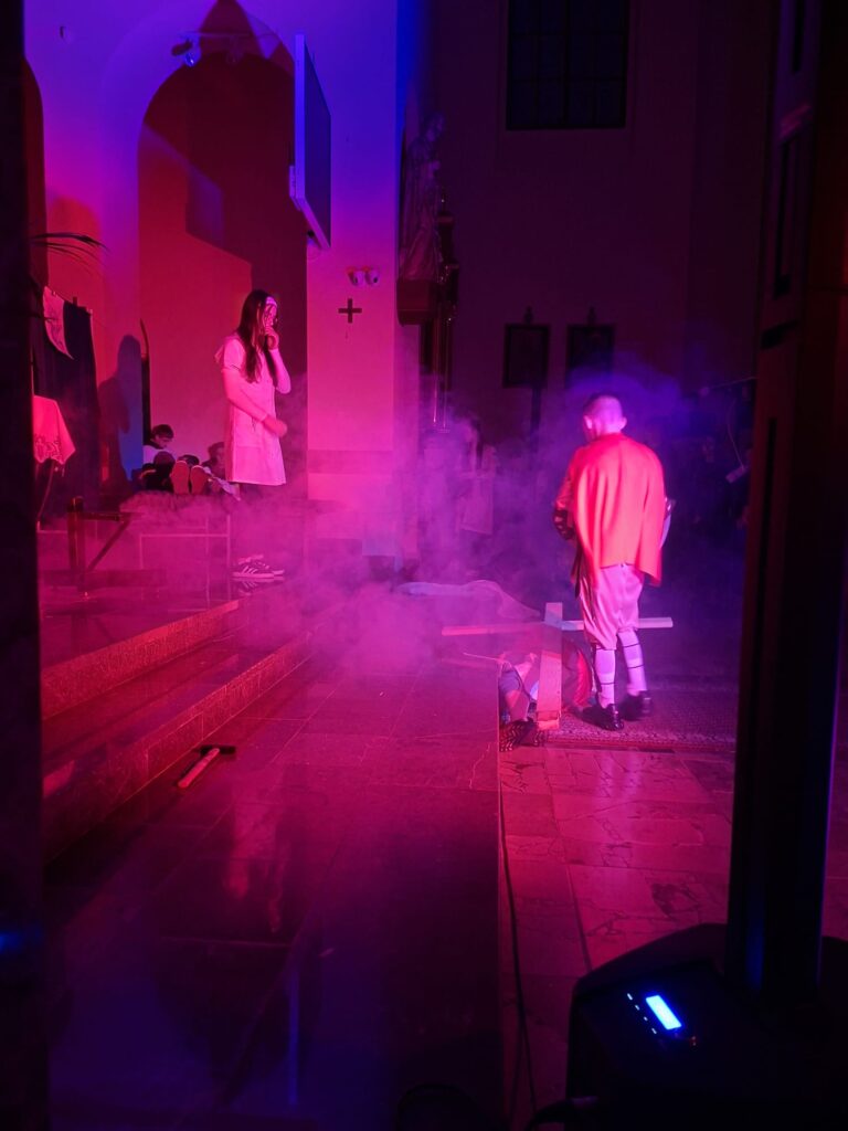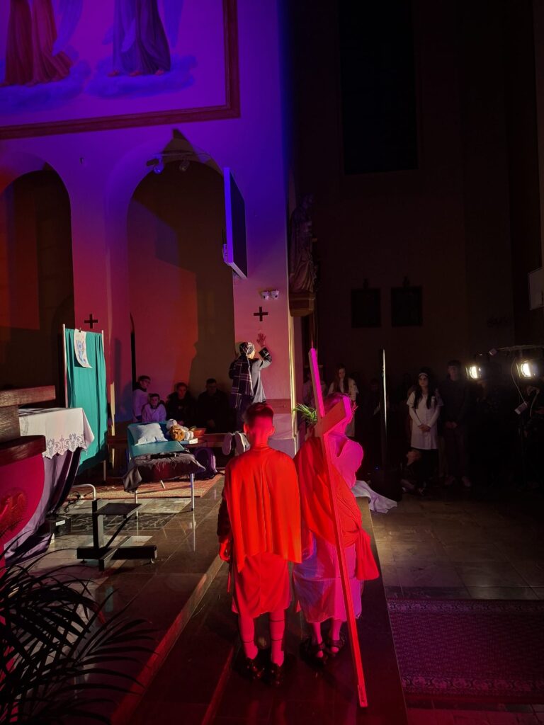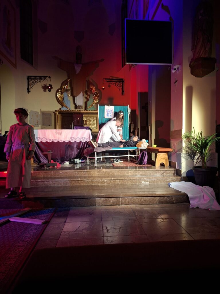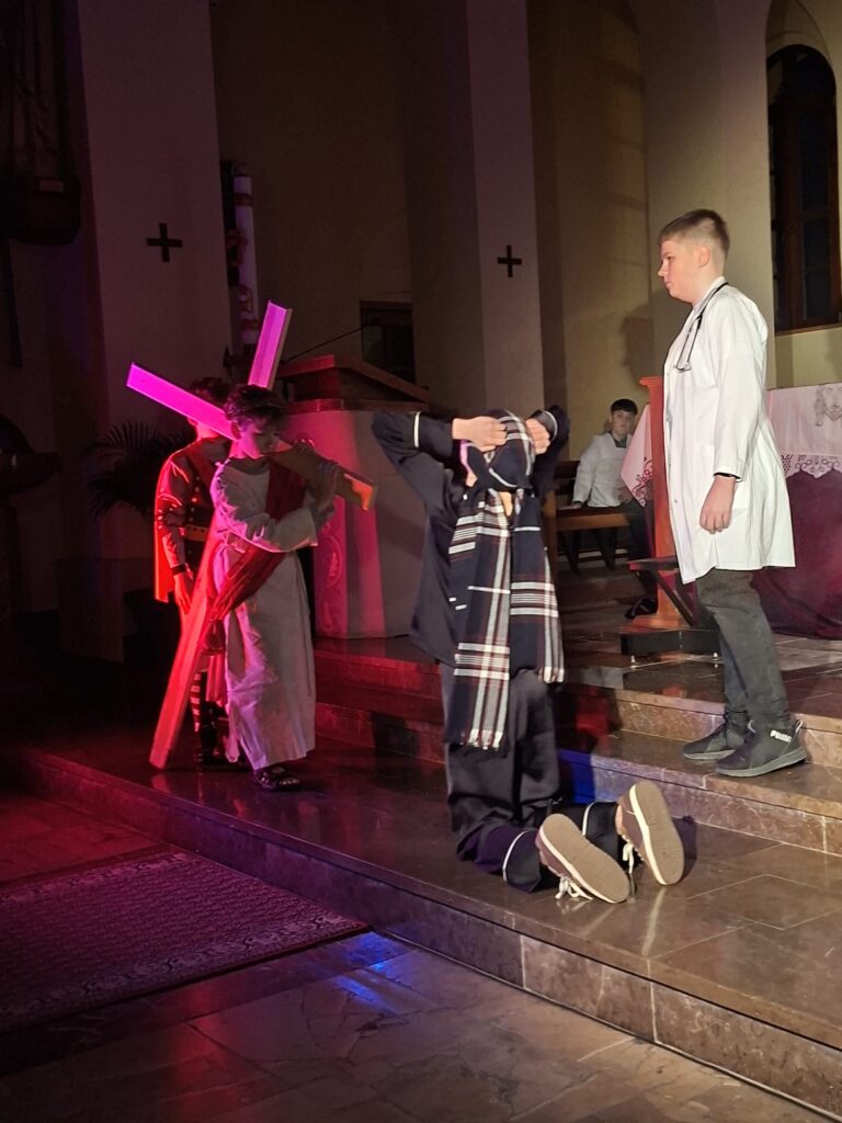 Wasza energia, zaangażowanie i autentyczność sprawiły, że to misterium naprawdę poruszało i nie pozwalało przejść obojętnie. Każda scena prowadziła głębiej – od emocji aż po refleksję nad sensem cierpienia i miłości.