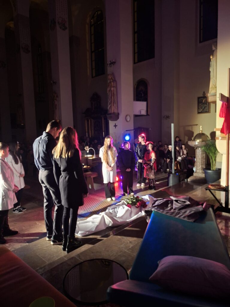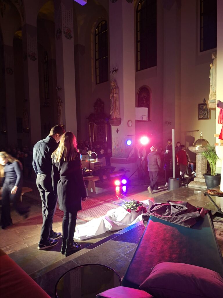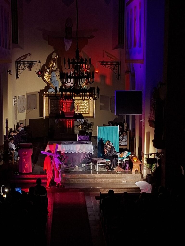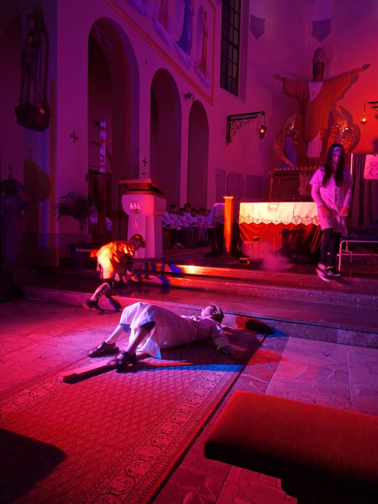 Wasza energia, zaangażowanie i autentyczność sprawiły, że to misterium naprawdę poruszało i nie pozwalało przejść obojętnie. Każda scena prowadziła głębiej – od emocji aż po refleksję nad sensem cierpienia i miłości.